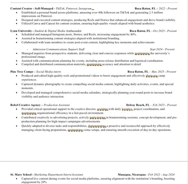 At Lynn University, I’ve taken on the role of Digital Media Ambassador, where I lead content strategy and production for Admissions’ social channels. Whether I’m capturing student life through Reels, scheduling campaigns, or covering campus events, I represent the university through a Gen Z lens — making sure every piece of content feels both personal and on-brand. I also work as a campus tour guide, giving prospective students and families an authentic, warm introduction to Lynn. These roles have taught me how to communicate clearly, connect meaningfully, and represent something bigger than myself.